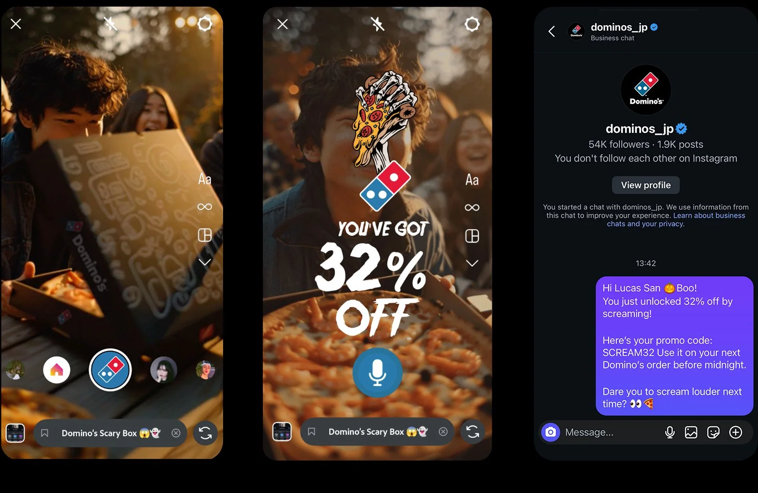 Users post their Story tag @dominosjp to claim their personalized discount;